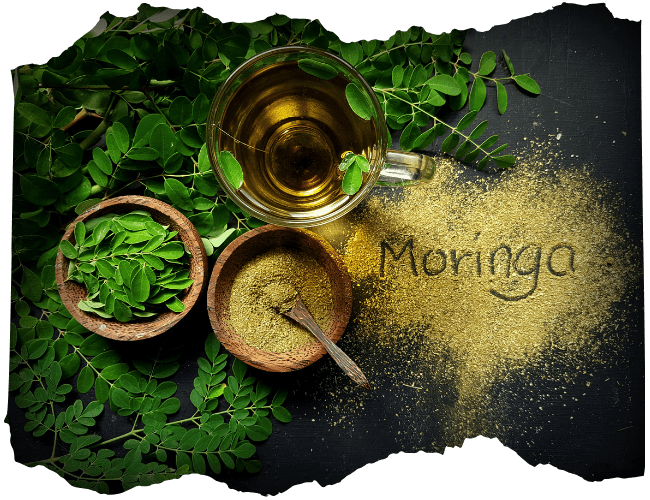 Bahan utama yang kaya dengan antioksidan, vitamin, dan mineral. Moringa terkenal dengan manfaat kesihatan untuk tenaga, imuniti, dan kecantikan.